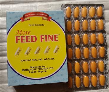 It is very effective and no side effect. Very good for all genders. Visible result expected within 2 Weeks. More Feed Fine Tablet for weight gain inturn boost the fatty flesh level of the body. It causes the body tissues to develop more protein and fatty tissues that adds to the weight of the body, without leaving the skin flabby. It's a fast appetite stimulant.