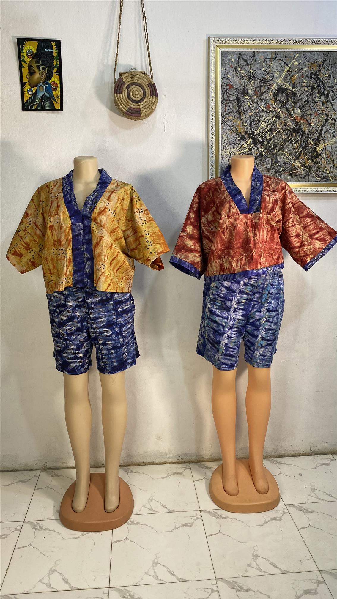 We have trendy beautiful Adire cotton Shorts available. Chat us for more pictures and We offer mass production for wholesalers. You can dropship for us too.