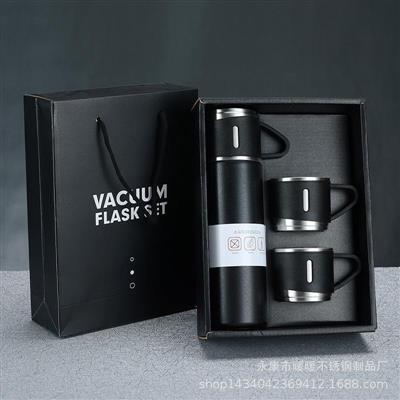 3 in 1 stainless quality steel vacuum flask. It comes in a beautiful black box. 500ml