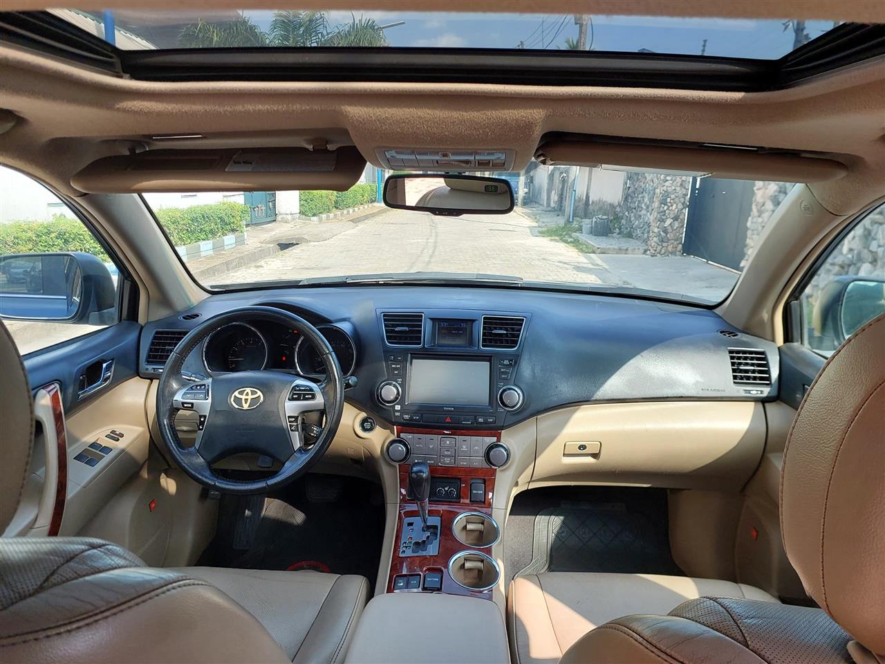 KEYLESS FIRST BODY Full OPTION straight 2011 MODEL TOYOTA HIGHLANDER LIMITED EDITION FOR SALE, very sound 3.5liters 2GR V6 engine and sharp automatic transmission with tiptronic gear shift, mileage 82k, factory navigation with reverse camera, inbuilt-Bluetooth AUDIO PLAYER, USB PORT and Aux for audio media, flip over 6loaders DVD player, ac cooling effectively, neat untouched CREAM UPHOLSTERY, 3 ROW SEATER, 4WD powered, sun roof, suspensions are superb, complete documentation, selling for 14.5mil