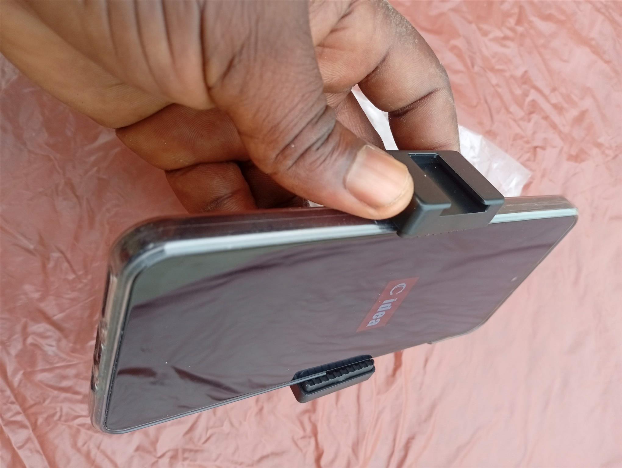 3. With tripod screws on both sides, a soft foam bumper, stretchable rubber arms and protective rubber lips.