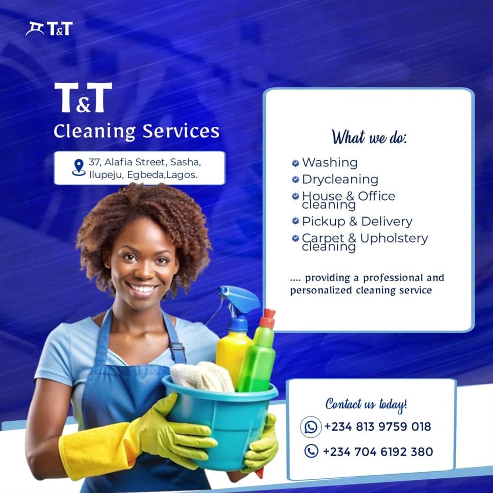 At T & T CLEANING SERVICES, we provide top-quality cleaning solutions for homes, offices, and commercial spaces. Our services include routine cleaning, deep cleaning, office maintenance, and post-construction clean-up – all delivered with professionalism and attention to detail.